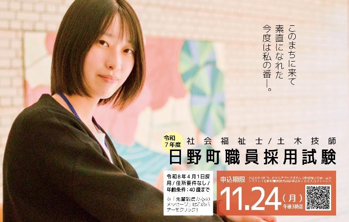 ▼募集要項はこちらからです。(令和7年度第3回日野町職員採用試験案内)