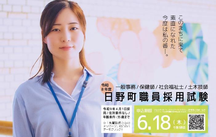 ▼募集要項はこちらからです。(令和8年度日野町職員採用試験案内)