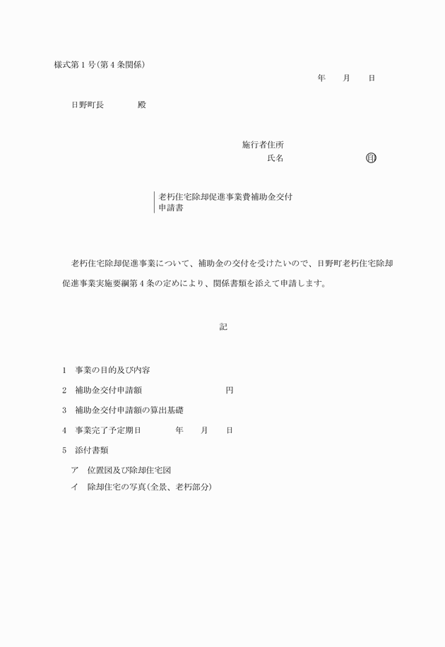 (1) 老朽住宅除却促進事業費補助金交付申請書(様式第1号)