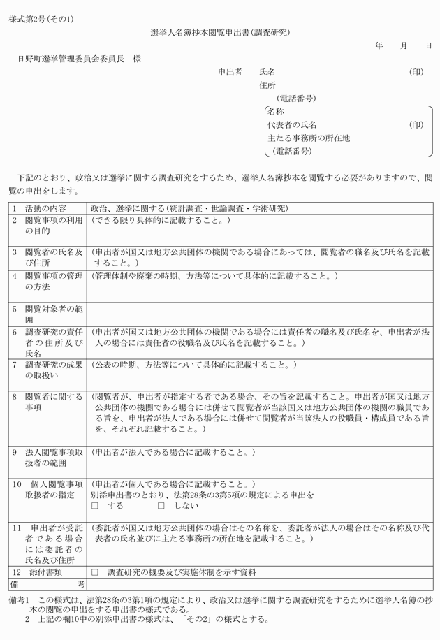 第2条 閲覧に供する書面は、選挙人名簿の抄本とする。