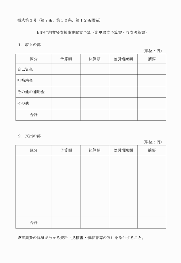 (2) 収支予算書(様式第3号)