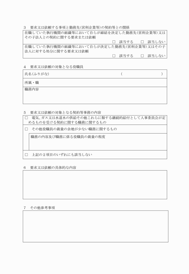 第11条 法第38条の2第6項第6号の規則で定める場合は、同号の要求又は依頼に係る職務上の行為が電気、ガス又は水道水の供給その他これらに類する継続的給付として町長が定めるものを受ける契約に関する職務その他役職員の裁量の余地が少ない職務に関するものである場合とする。