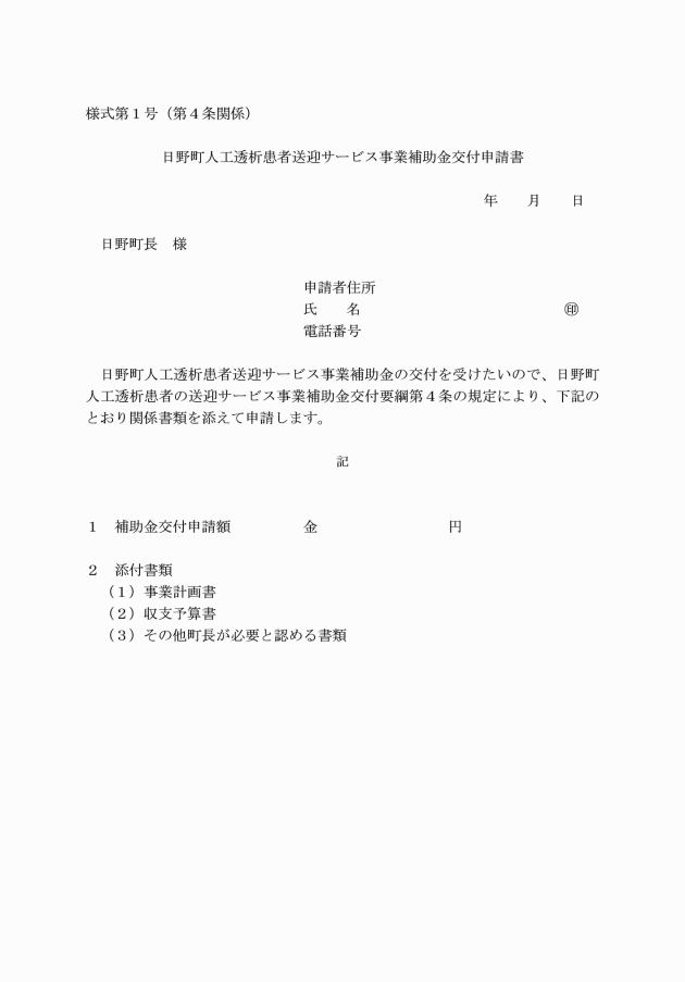 ○日野町人工透析患者送迎サービス事業補助金交付要綱